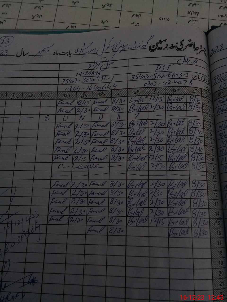 | Name: AB**** RA**** Designation: (School Headmaster's/Headmistress's) PST Phone/Cell Number: 03**** |