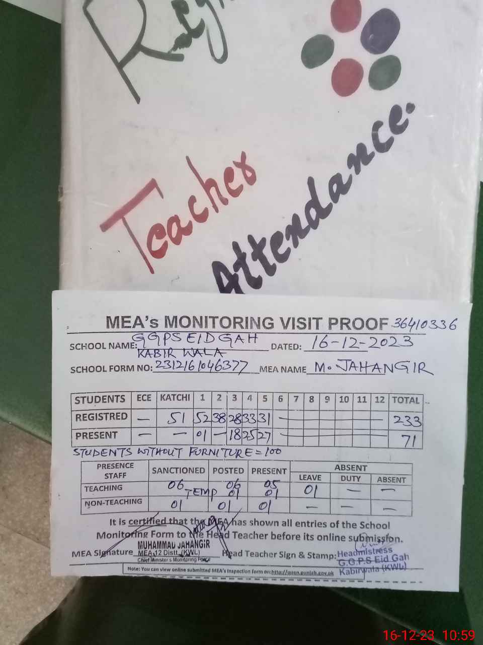 | EMIS Code: 36410336 | Name of School: GGPS EID GHAH, KABIRWALA | |||