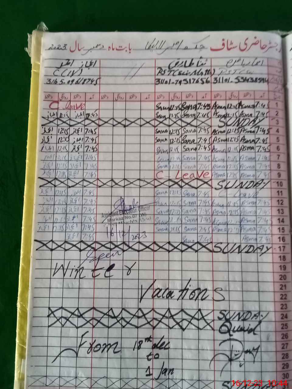 | Name: As**** Ri**** Designation: (School Headmaster's/Headmistress's) PST Phone/Cell Number: 03**** |
