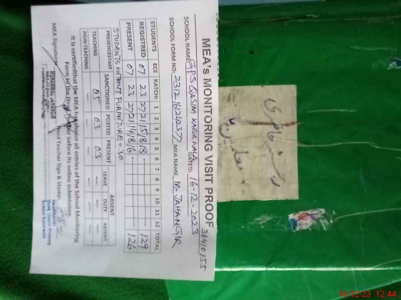 | EMIS Code: 36410155 | Name of School: GPS QASIM KABIRWALA, KABIRWALA | |||