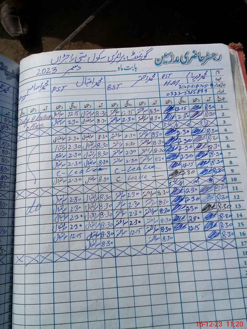 | Name: MU**** WA**** Designation: (School Headmaster's/Headmistress's) PST Phone/Cell Number: 03**** |