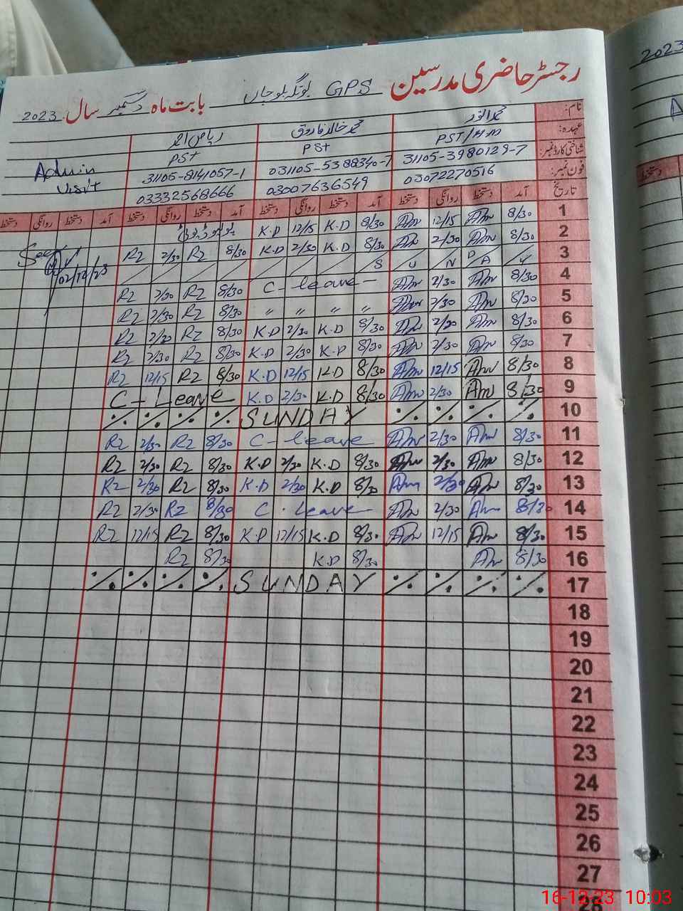 | Name: MU**** AN**** Designation: (School Headmaster's/Headmistress's) PST Phone/Cell Number: 03**** |