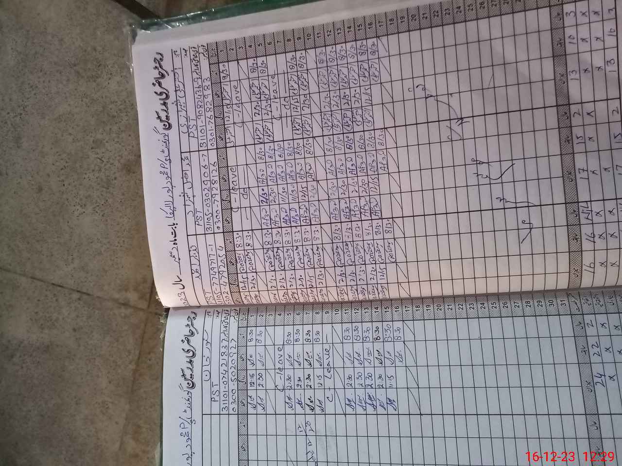 | CNIC | Full Name | Designation | R/C | Absence during last cal. month |