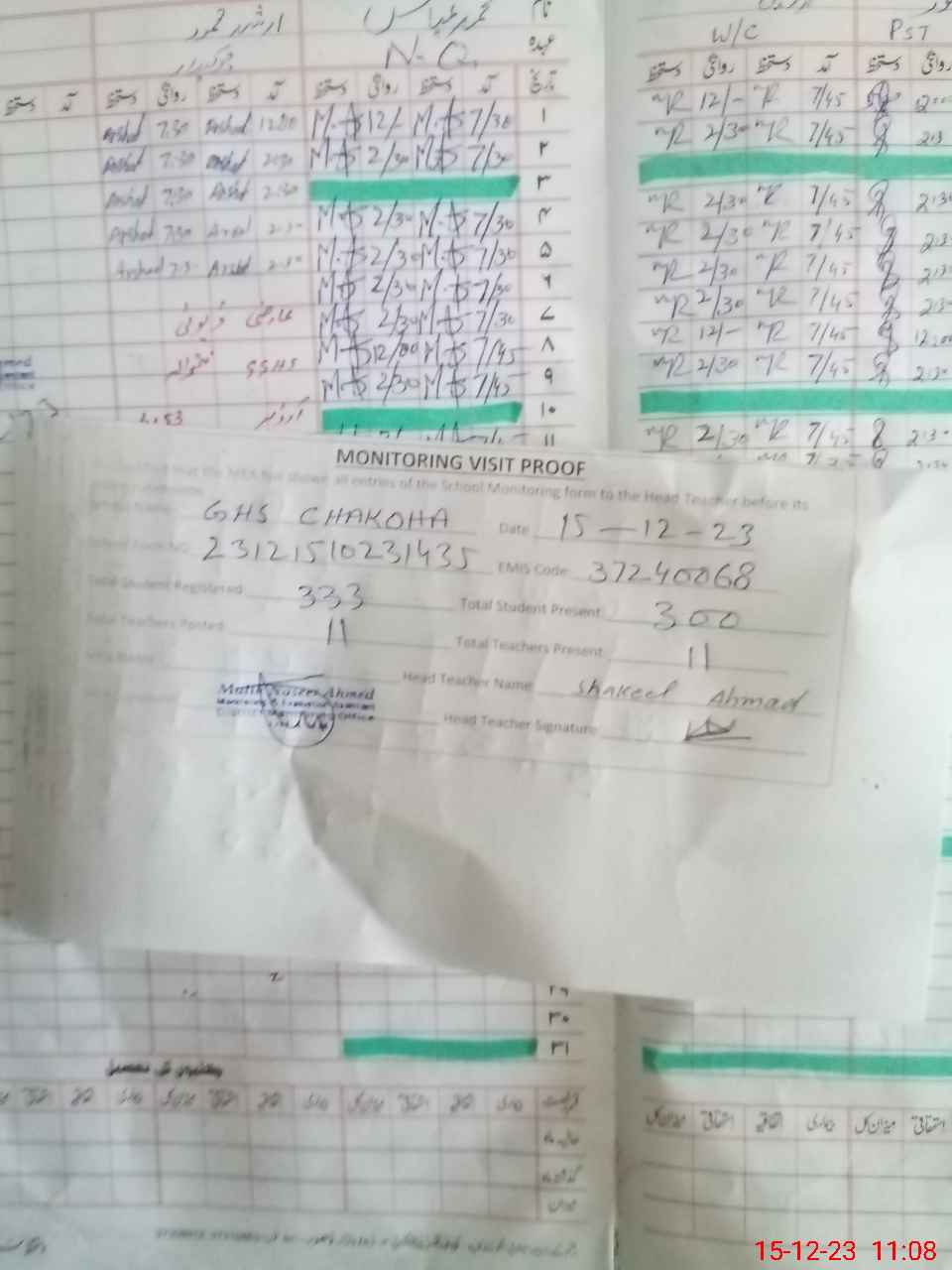 | Attendance Register | Head Teacher | MEA with School | Visit Proof |