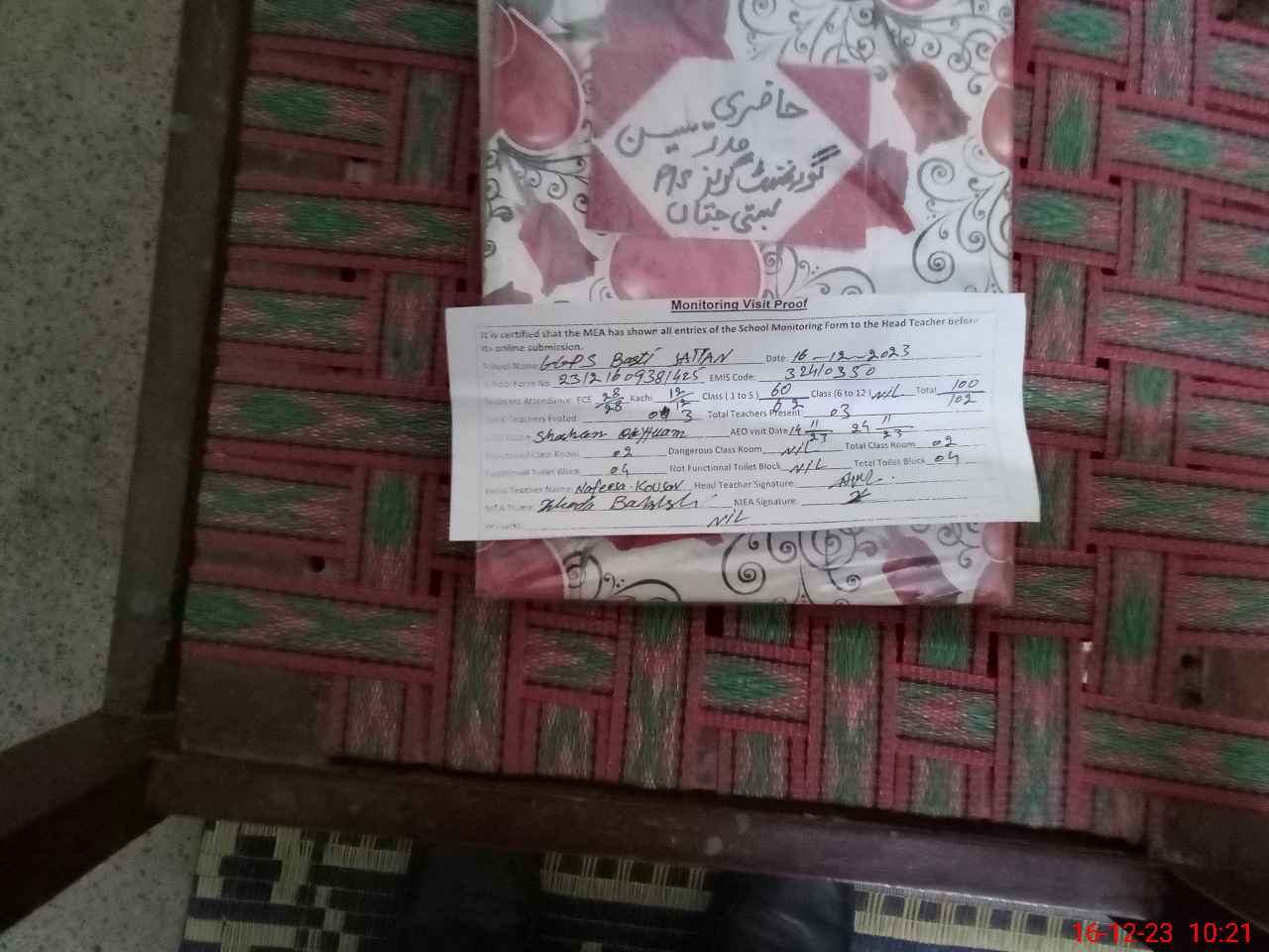 | Certified that this School was Inspected by the Undersigned MEA/DMO Today and the Information Stated Above is as Per Record. | |||||