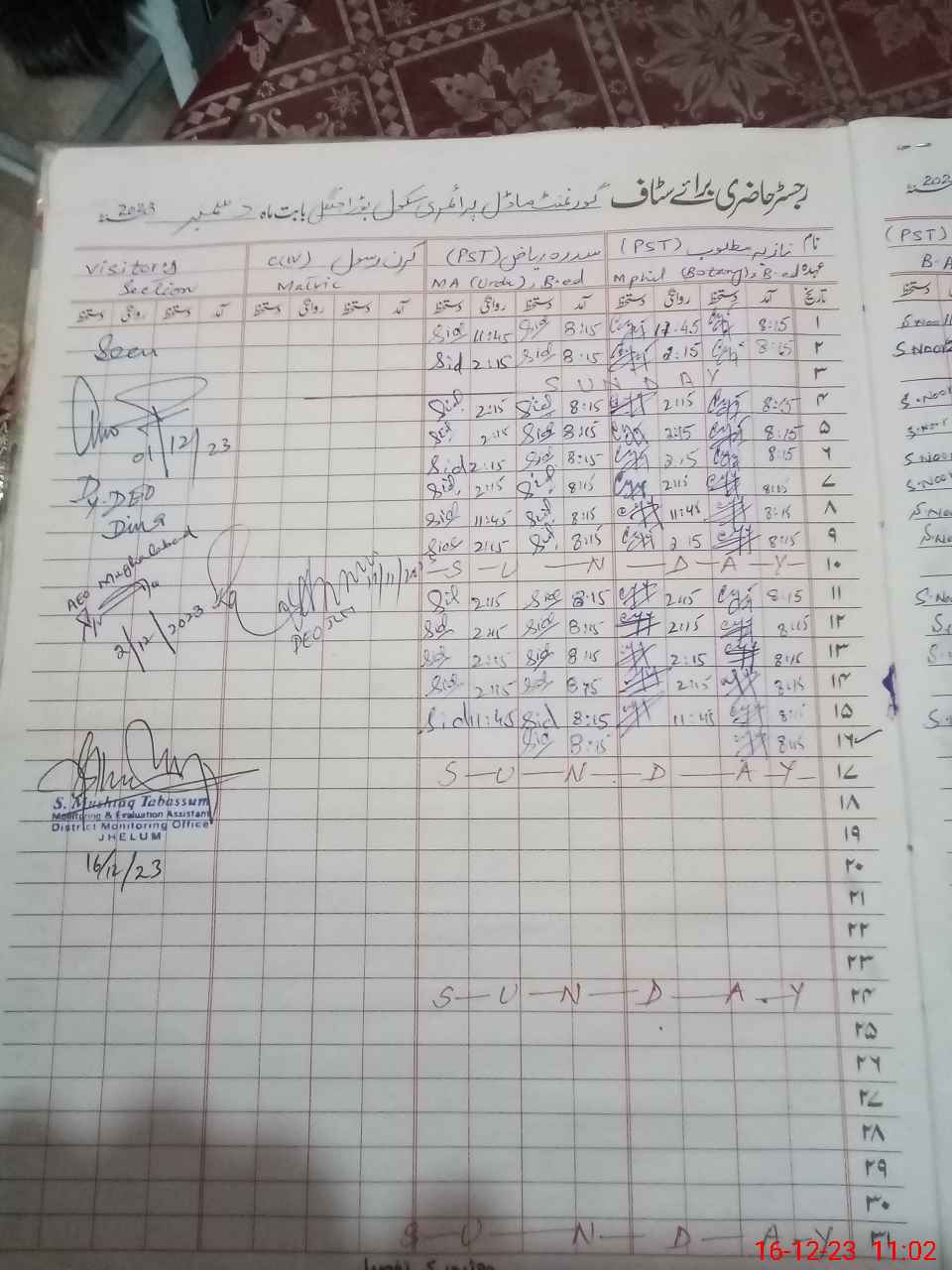 | District: JHELUM | Tehsil: DINA | Markaz: MUGHAL ABAD-FEMALE | Level: Primary | |