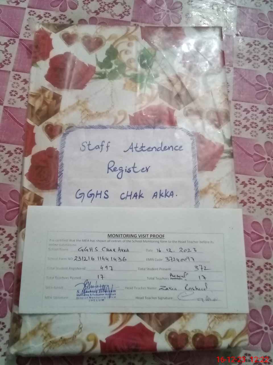 | EMIS Code: 37240097 | Name of School: GGHS CHAK AKKA | |||