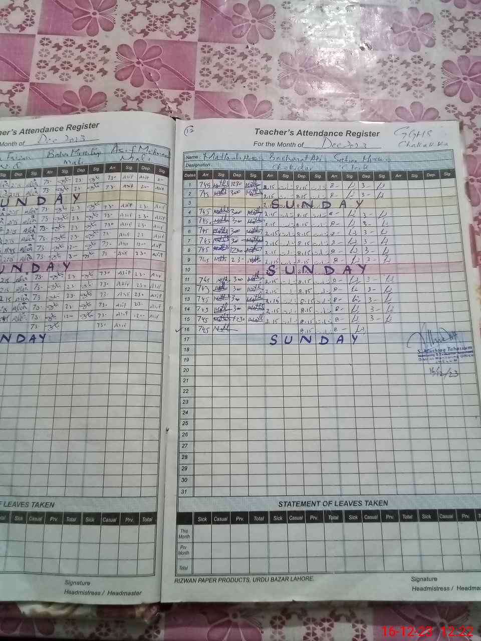 | Name: Za**** Ra**** Designation: (School Headmaster's/Headmistress's) Headmistress Phone/Cell Number: 03**** |