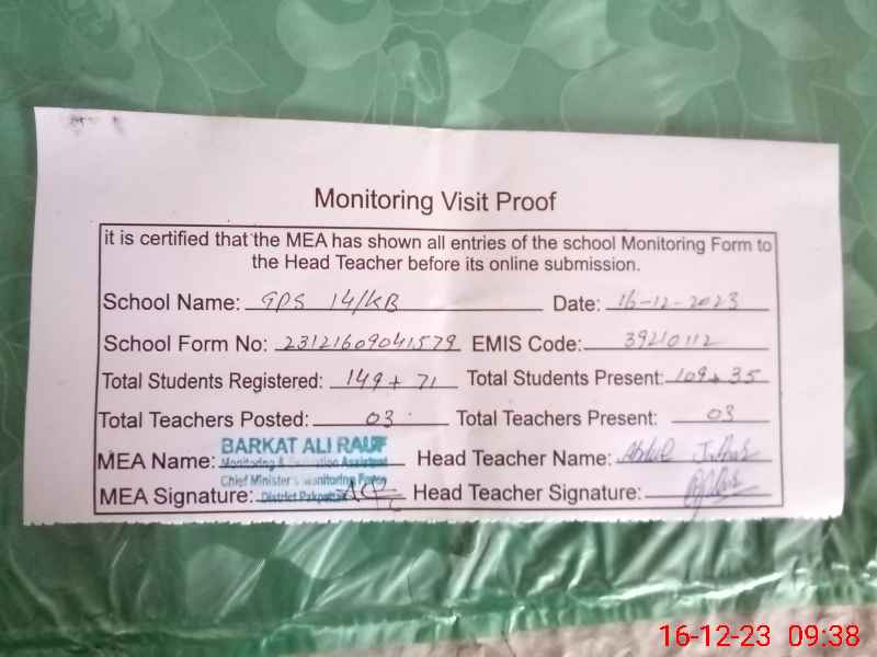| EMIS Code: 39210112 | Name of School: GPS 14 KB P.O KALYANA | |||
