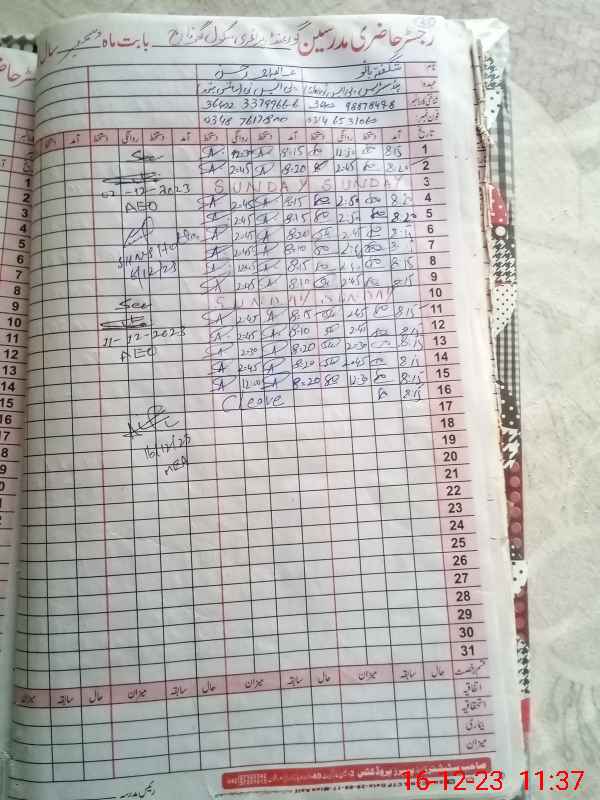 | Name: SH**** BA**** Designation: (School Headmaster's/Headmistress's) PST Phone/Cell Number: 03**** |