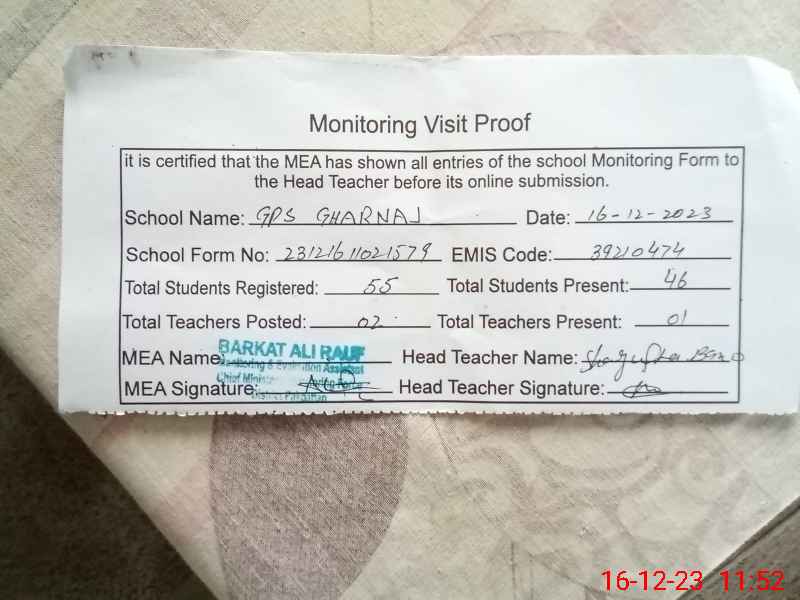 | EMIS Code: 39210474 | Name of School: GPS GHARNAJ | |||