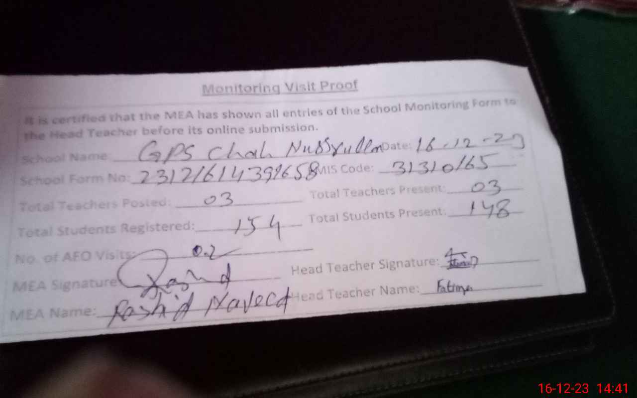 | EMIS Code: 31310165 | Name of School: GPS CHAH NASRULLAH | |||