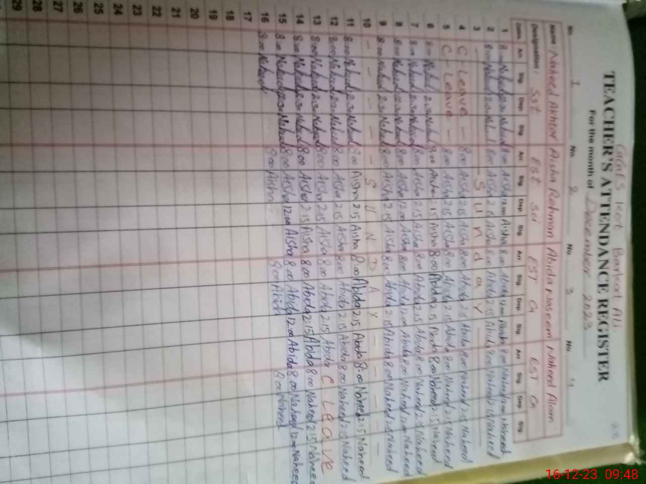 | CNIC | Full Name | Designation | R/C | Absence During Last Calender Month |