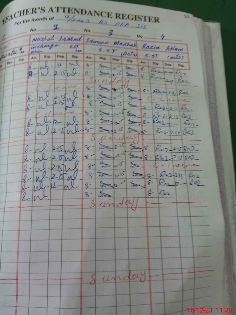 | Name: Nu**** Ir**** Designation: (School Headmaster's/Headmistress's) Incharge Head Phone/Cell Number: 03**** |