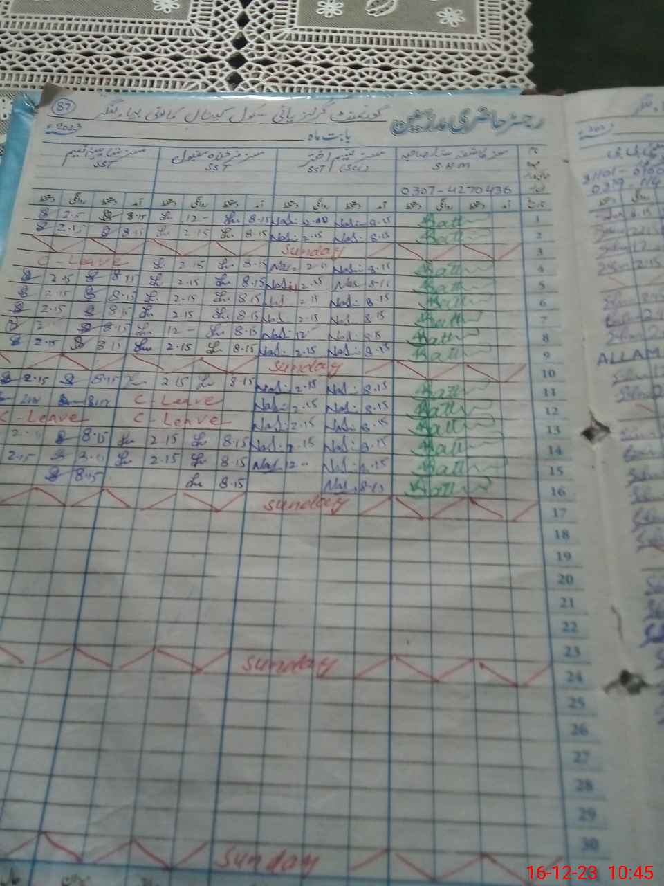 | CNIC | Full Name | Designation | R/C | Absence During Last Calender Month |