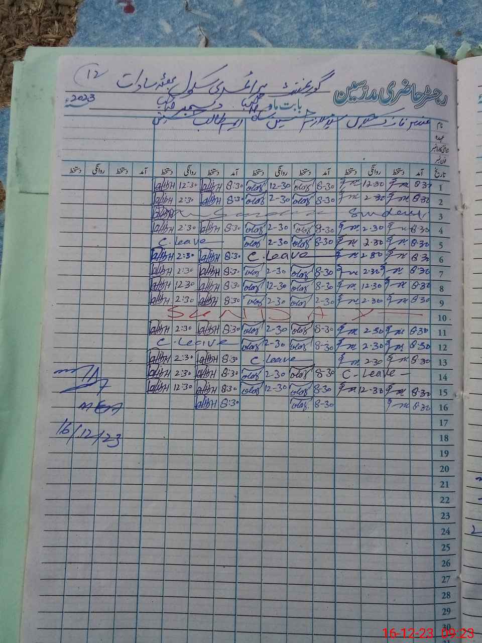 | CNIC | Full Name | Designation | R/C | Absence During Last Calender Month |