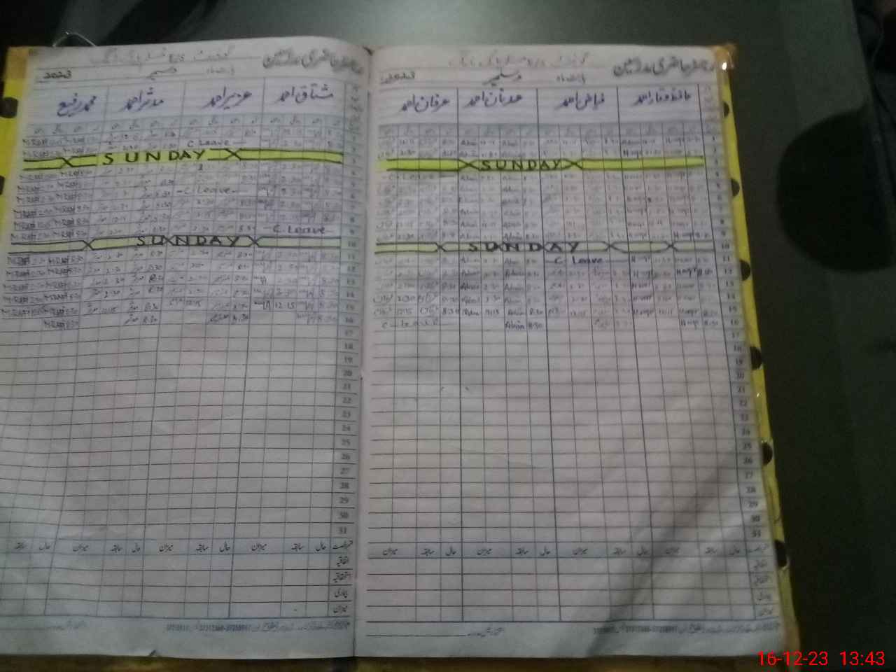 | CNIC | Full Name | Designation | R/C | Absence During Last Calender Month |