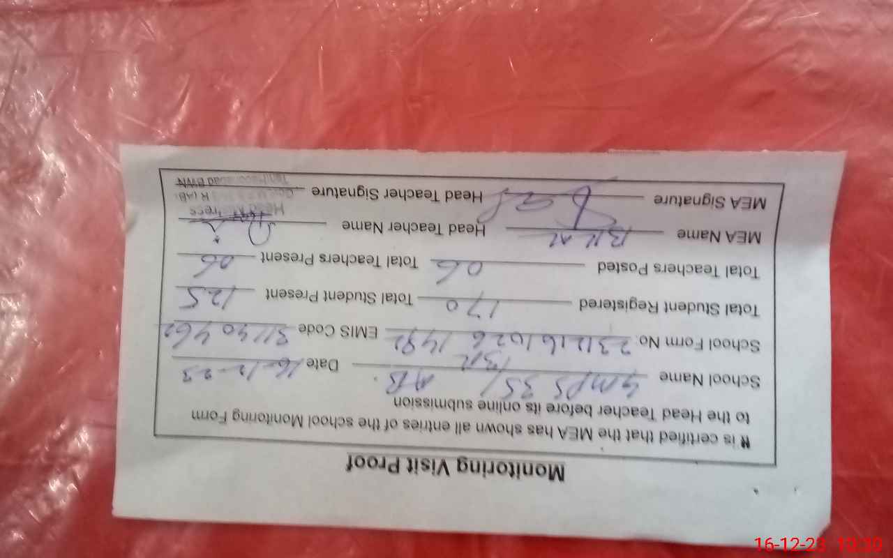 | Attendance Register | Head Teacher | MEA with School | Visit Proof |