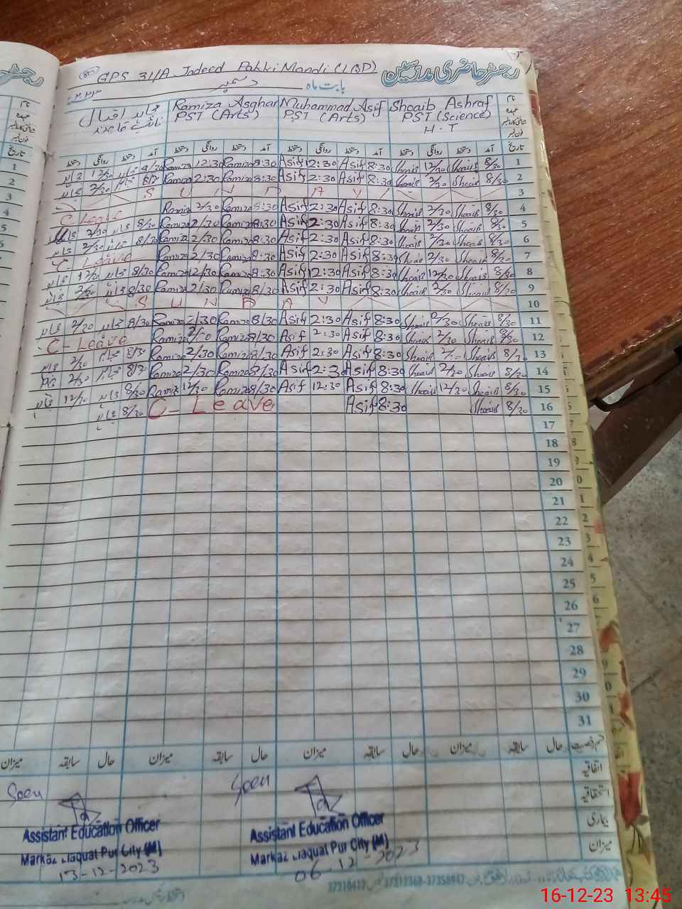 | CNIC | Full Name | Designation | R/C | Absence During Last Calender Month |