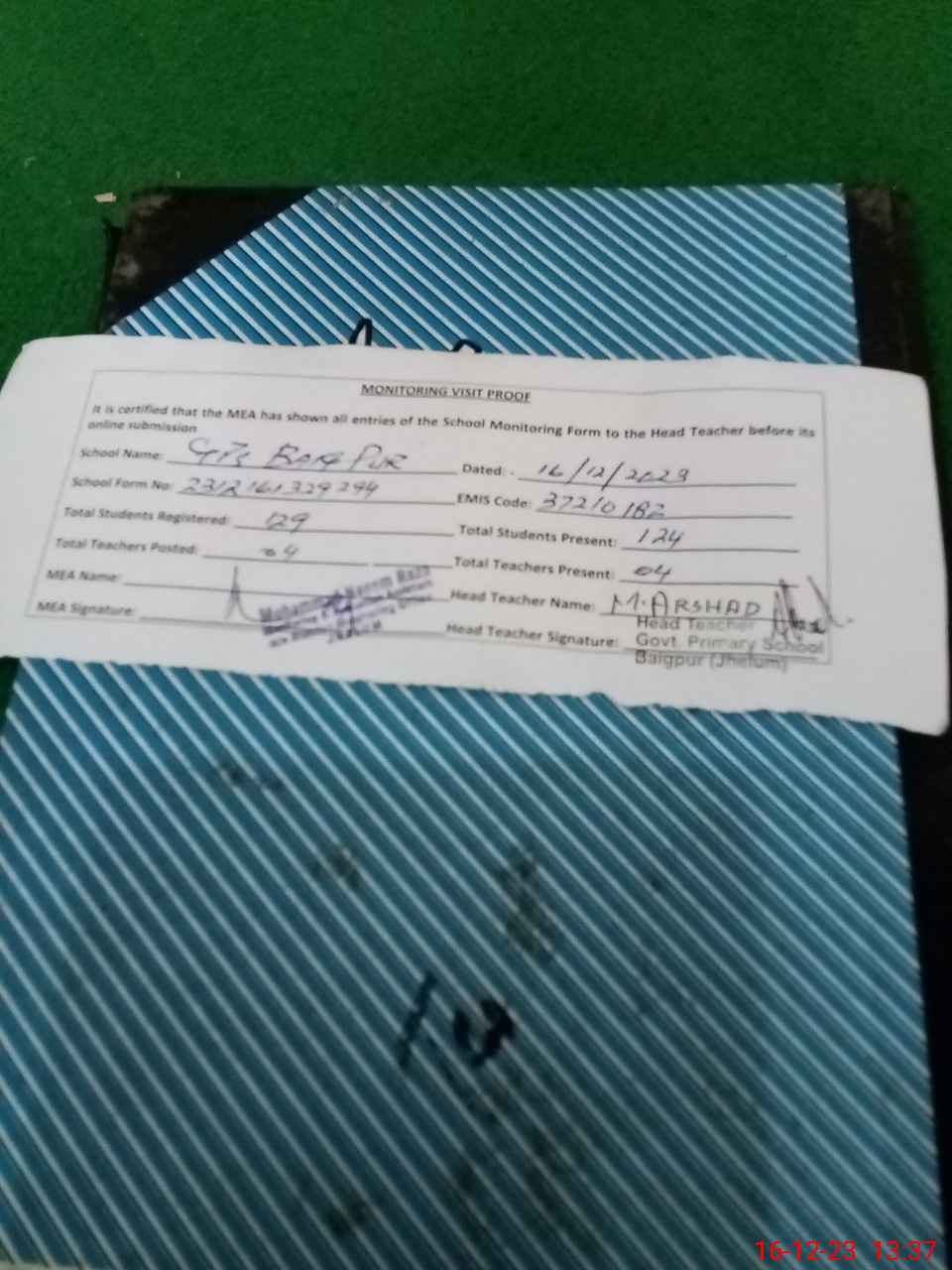 | EMIS Code: 37210182 | Name of School: GPS BAIG PUR | |||