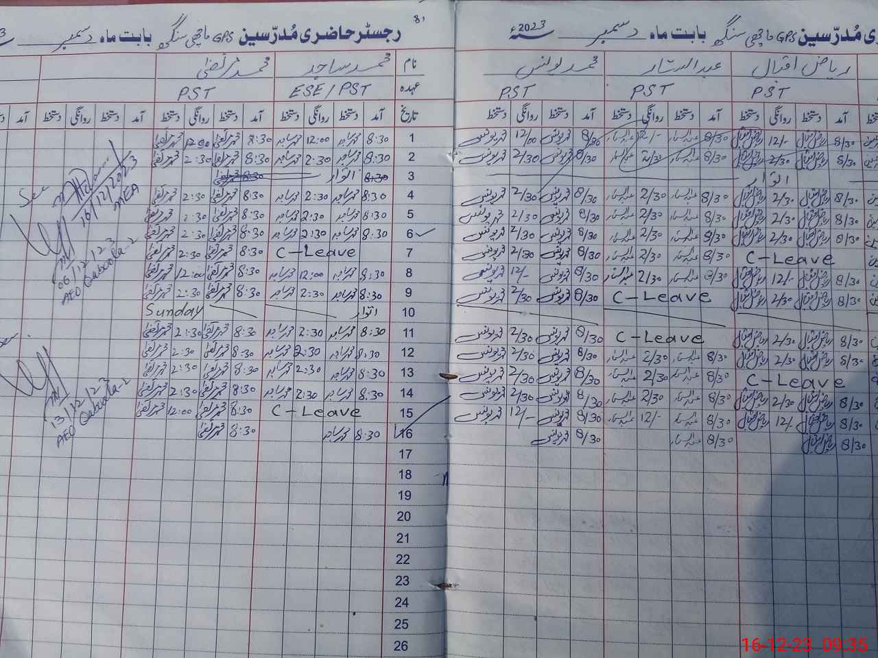 | CNIC | Full Name | Designation | R/C | Absence during last cal. month |