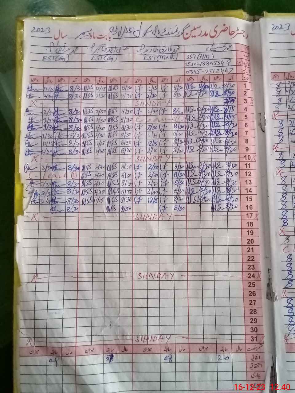 | Name: MU**** Ri**** Ja**** Designation: (School Headmaster's/Headmistress's) SST Phone/Cell Number: 03**** |