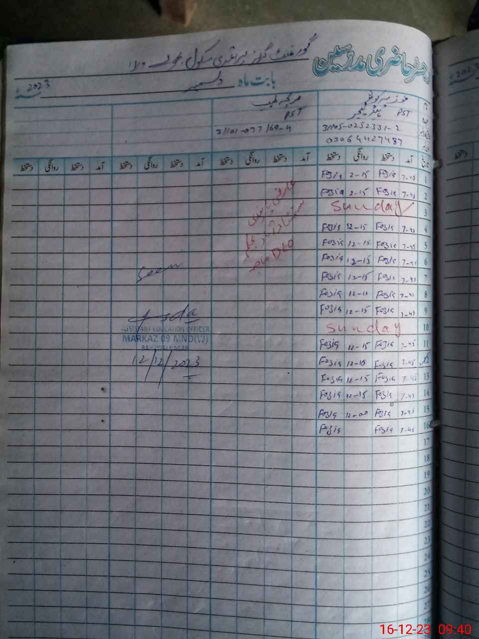 | Name: FO**** KO**** Designation: (School Headmaster's/Headmistress's) PST Phone/Cell Number: 03**** |