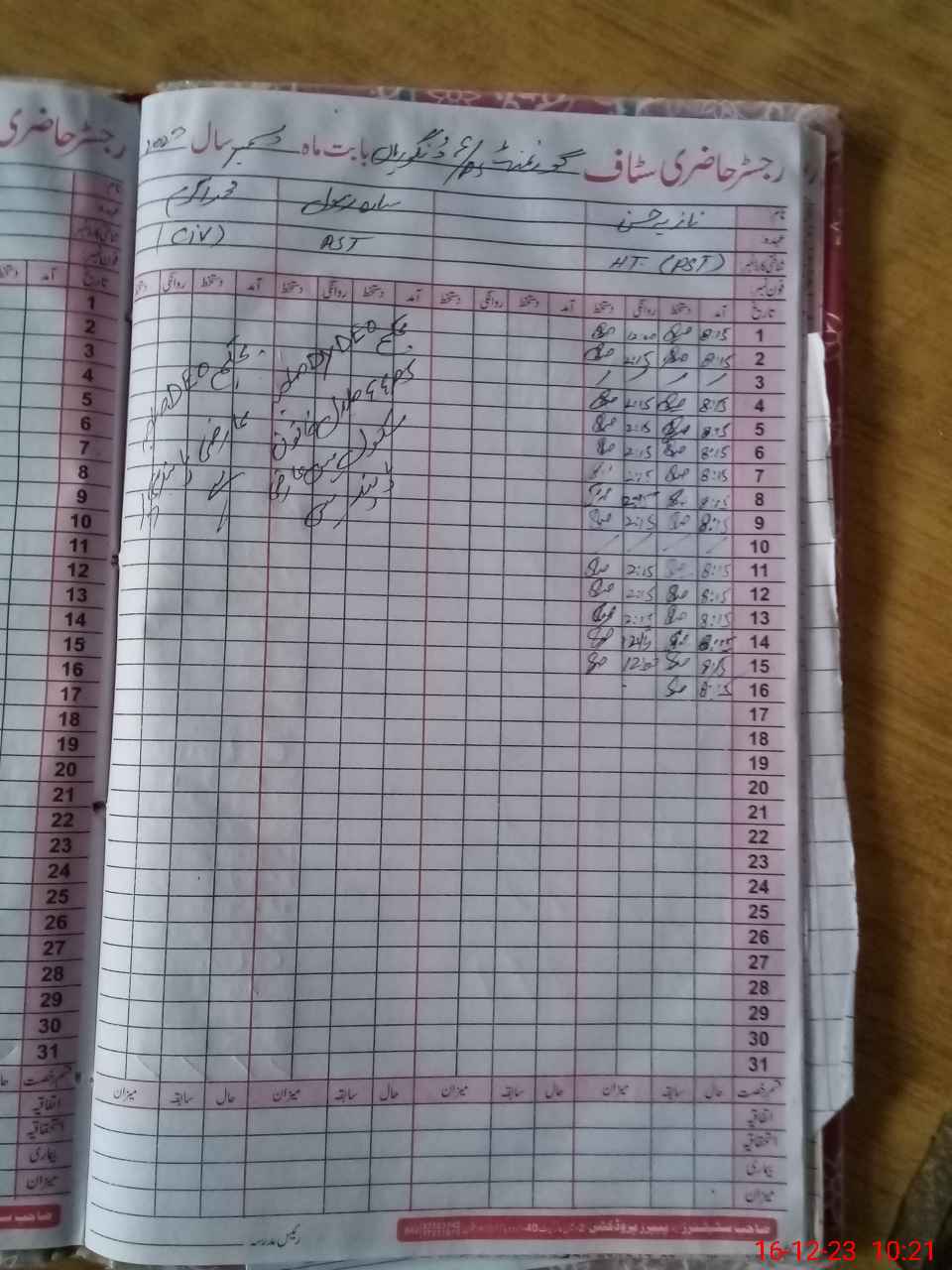 | CNIC | Full Name | Designation | R/C | Absence During Last Calender Month |