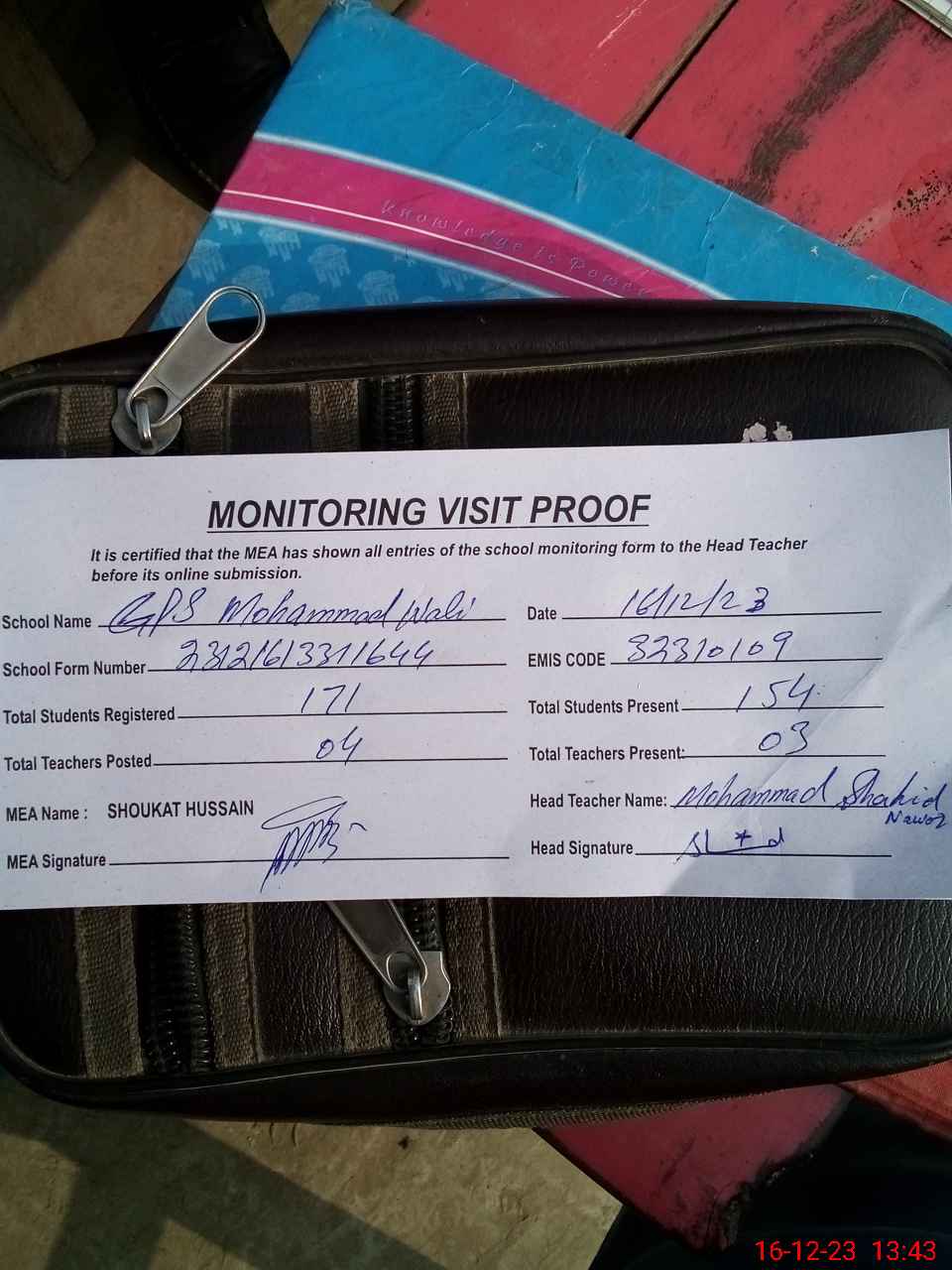 | EMIS Code: 32310109 | Name of School: GPS MUHAMMAD WALI | |||