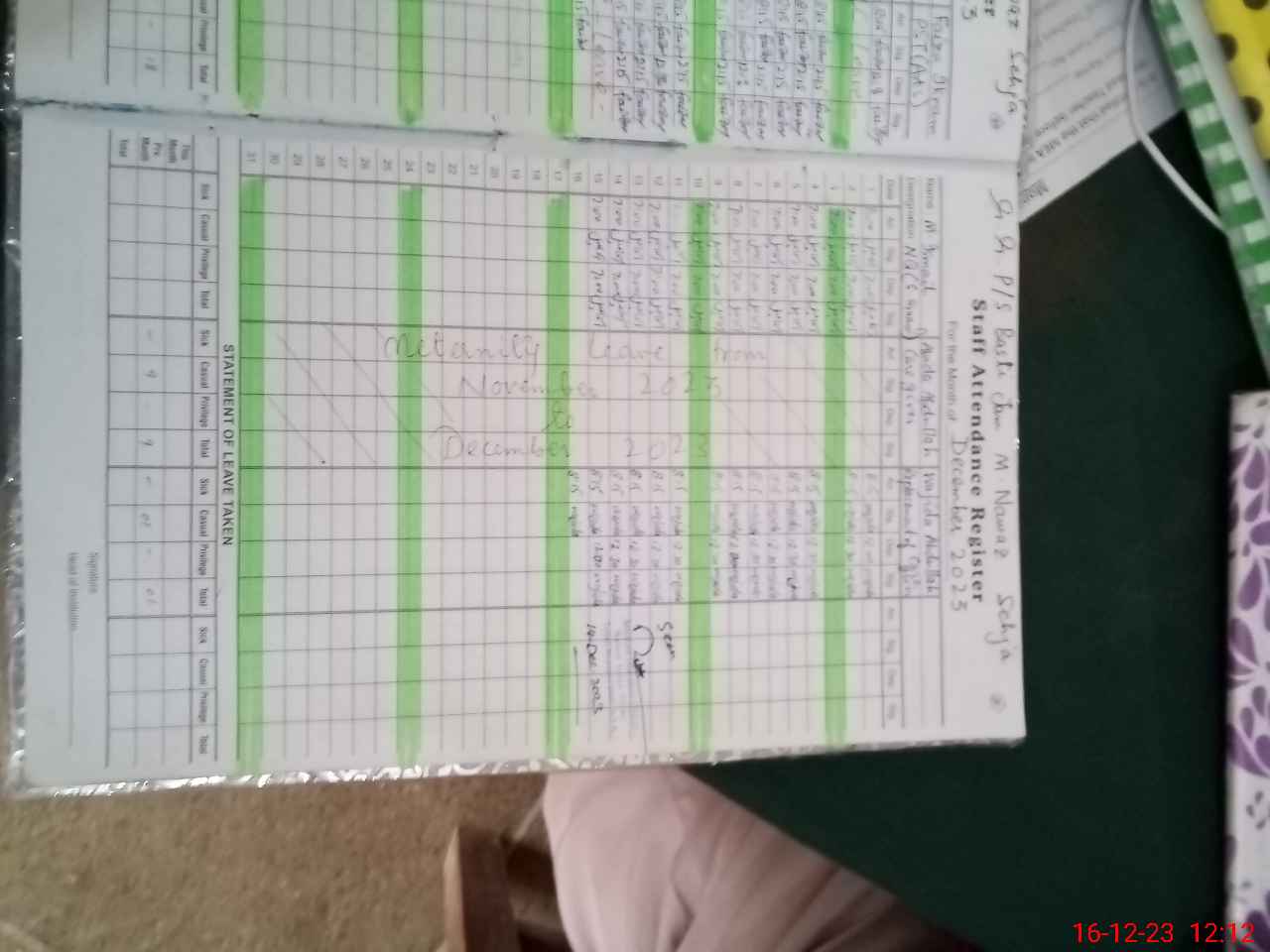 | Leave | Duty | Absent | Maternity | Medical | Ex- Pak |