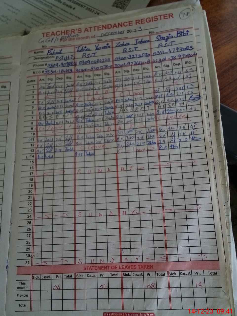 | Name: Ta**** Ya**** Designation: (School Headmaster's/Headmistress's) PST Phone/Cell Number: 03**** |