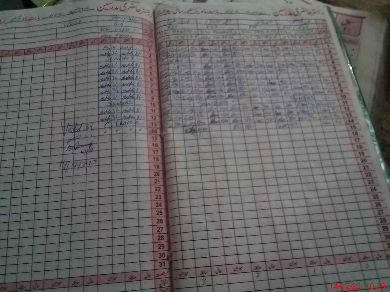 | CNIC | Full Name | Designation | R/C | Absence During Last Calender Month |