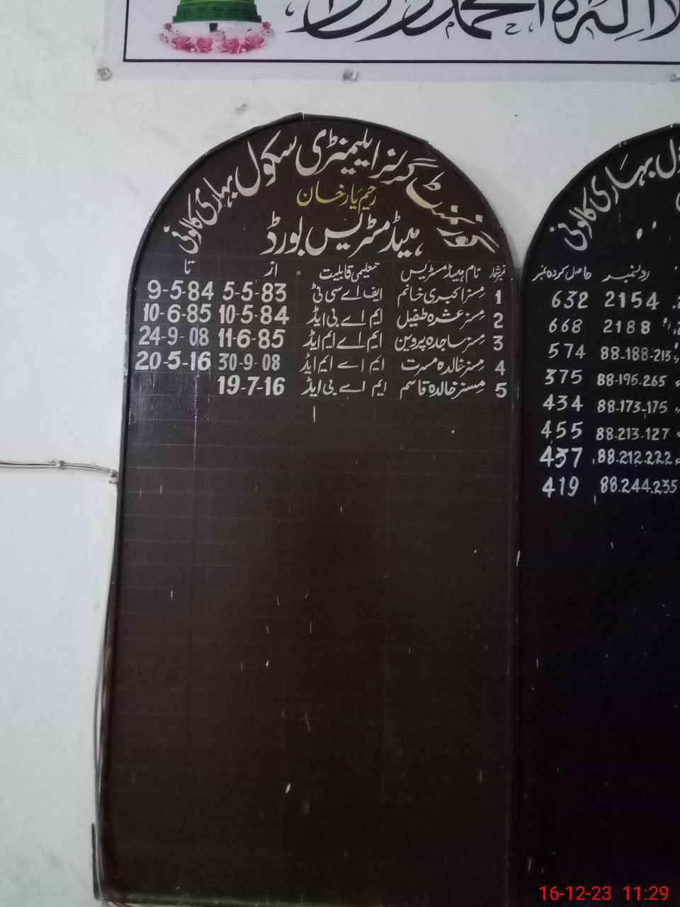 | Name: Uz**** Ra**** Designation: (School Headmaster's/Headmistress's) Head Mistress Phone/Cell Number: 03**** |