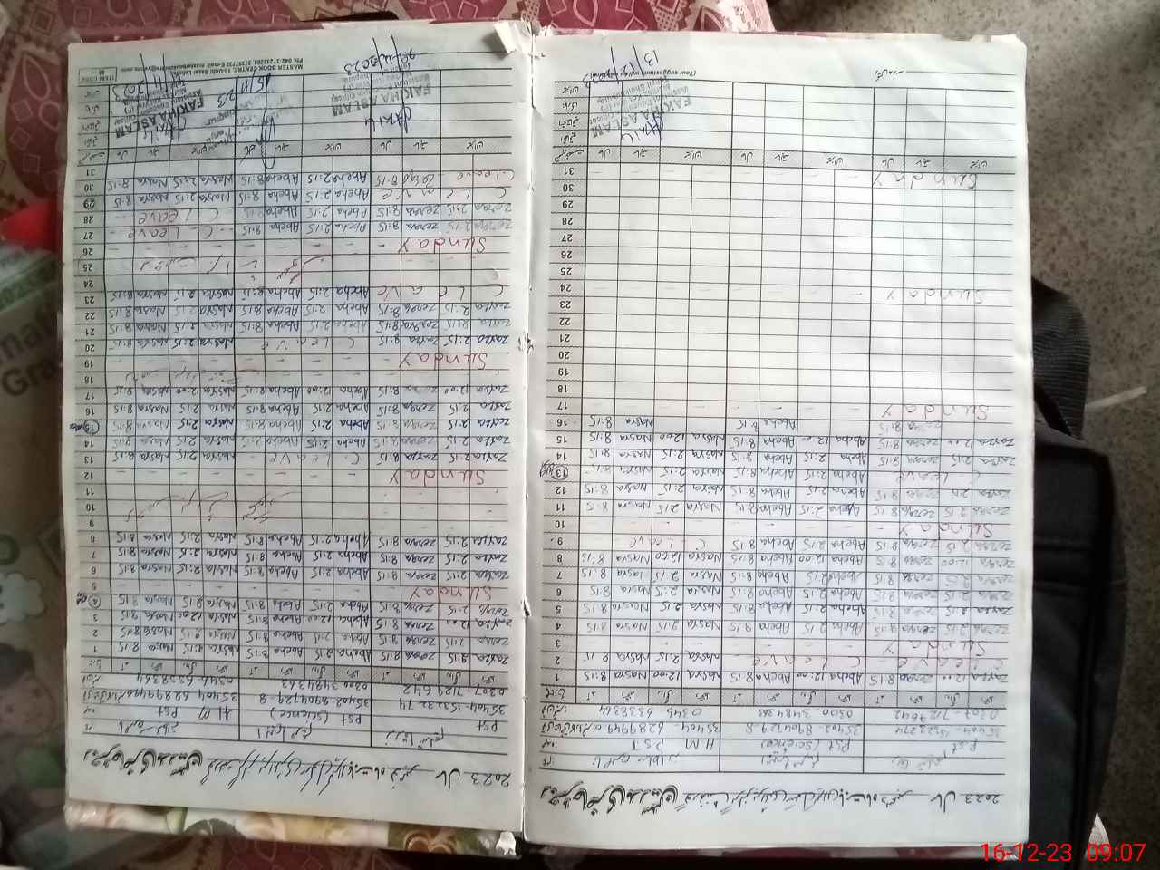| CNIC | Full Name | Designation | R/C | Absence During Last Calender Month |