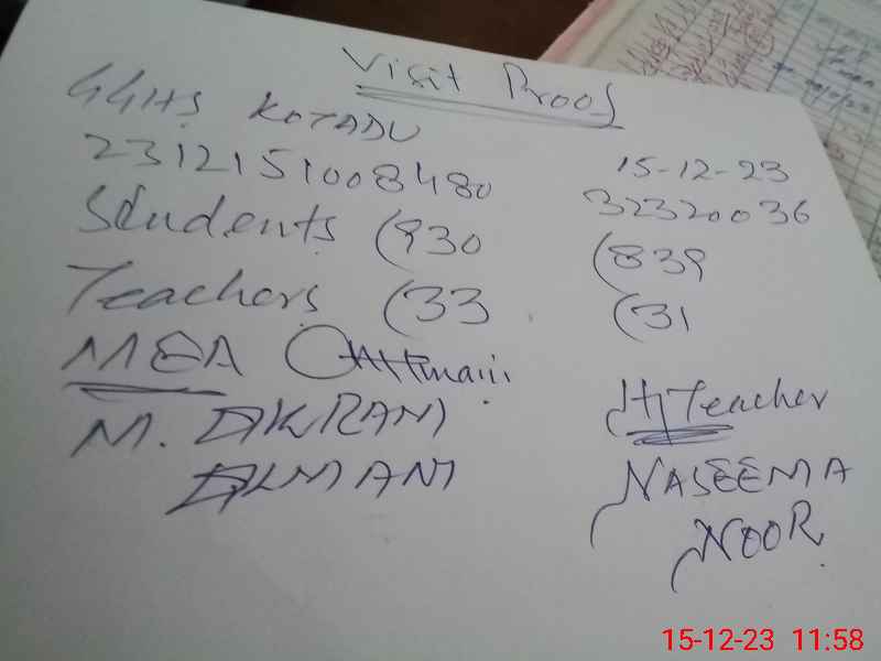 | EMIS Code: 32320036 | Name of School: GGHS KOT ADU | |||