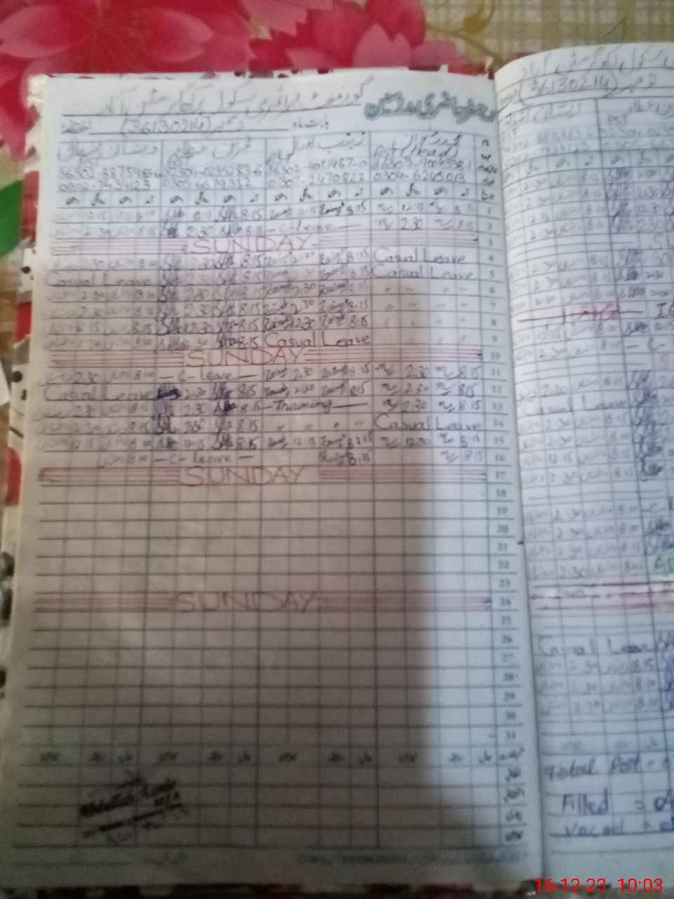 | CNIC | Full Name | Designation | R/C | Absence During Last Calender Month |