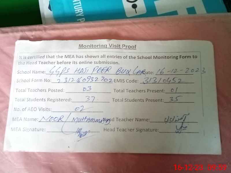 | EMIS Code: 31310452 | Name of School: GGPS HAJI PEER BUKHSH | |||