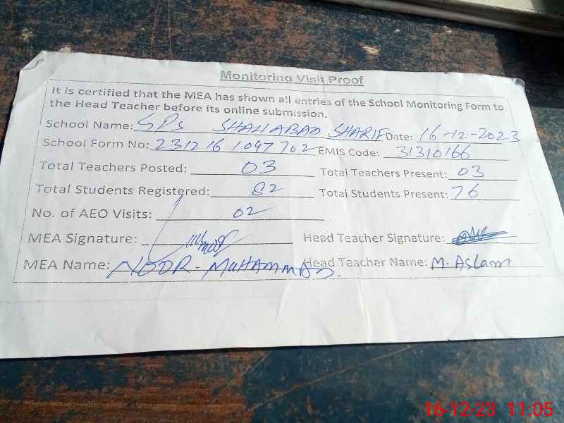 | EMIS Code: 31310166 | Name of School: GPS SHAH ABAD SHARIF | |||