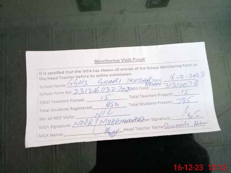 | EMIS Code: 31310078 | Name of School: GGHS GHARHI IKHTIAR KHAN | |||
