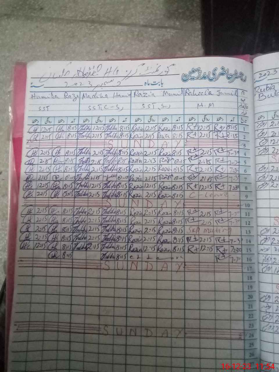 | District: SHEIKHUPURA | Tehsil: MURIDKE | Markaz: SECONDARY-WING | Level: High | |
