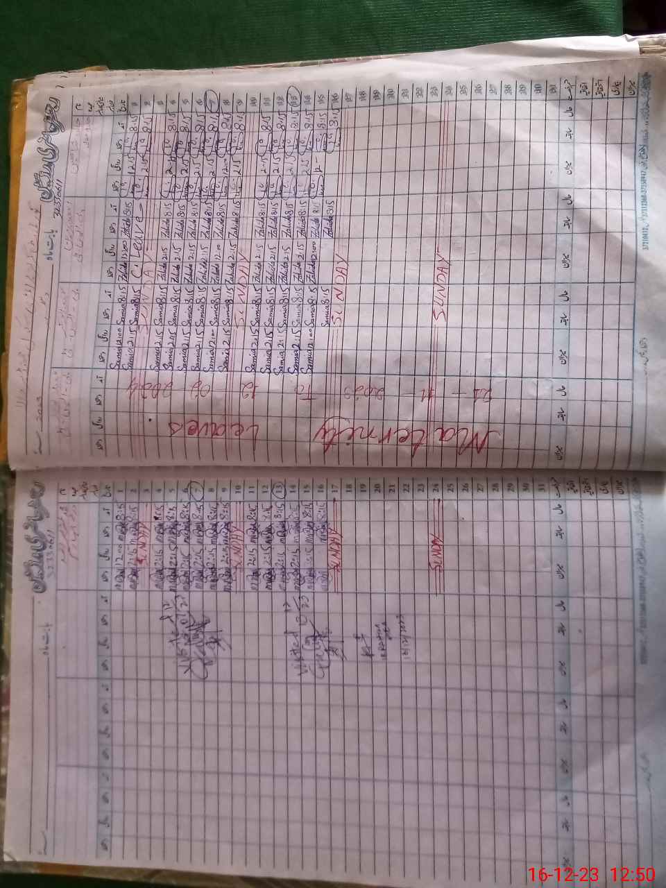 | CNIC | Full Name | Designation | R/C | Absence During Last Calender Month |