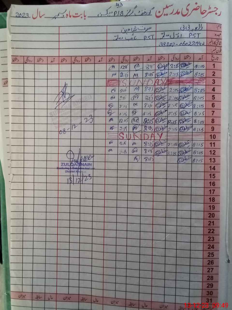 | Name: Ra**** Bi**** Designation: (School Headmaster's/Headmistress's) PST Phone/Cell Number: 03**** |