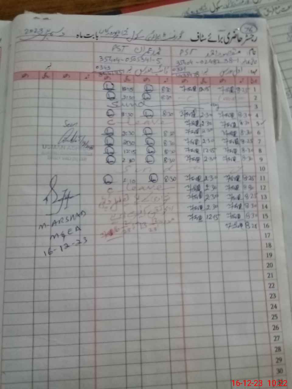 | Name: MA**** AH**** Designation: (School Headmaster's/Headmistress's) PST Phone/Cell Number: 03**** |