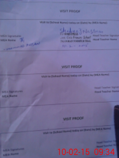 | Attendance Register | Head Teacher | MEA with School | Visit Proof |
