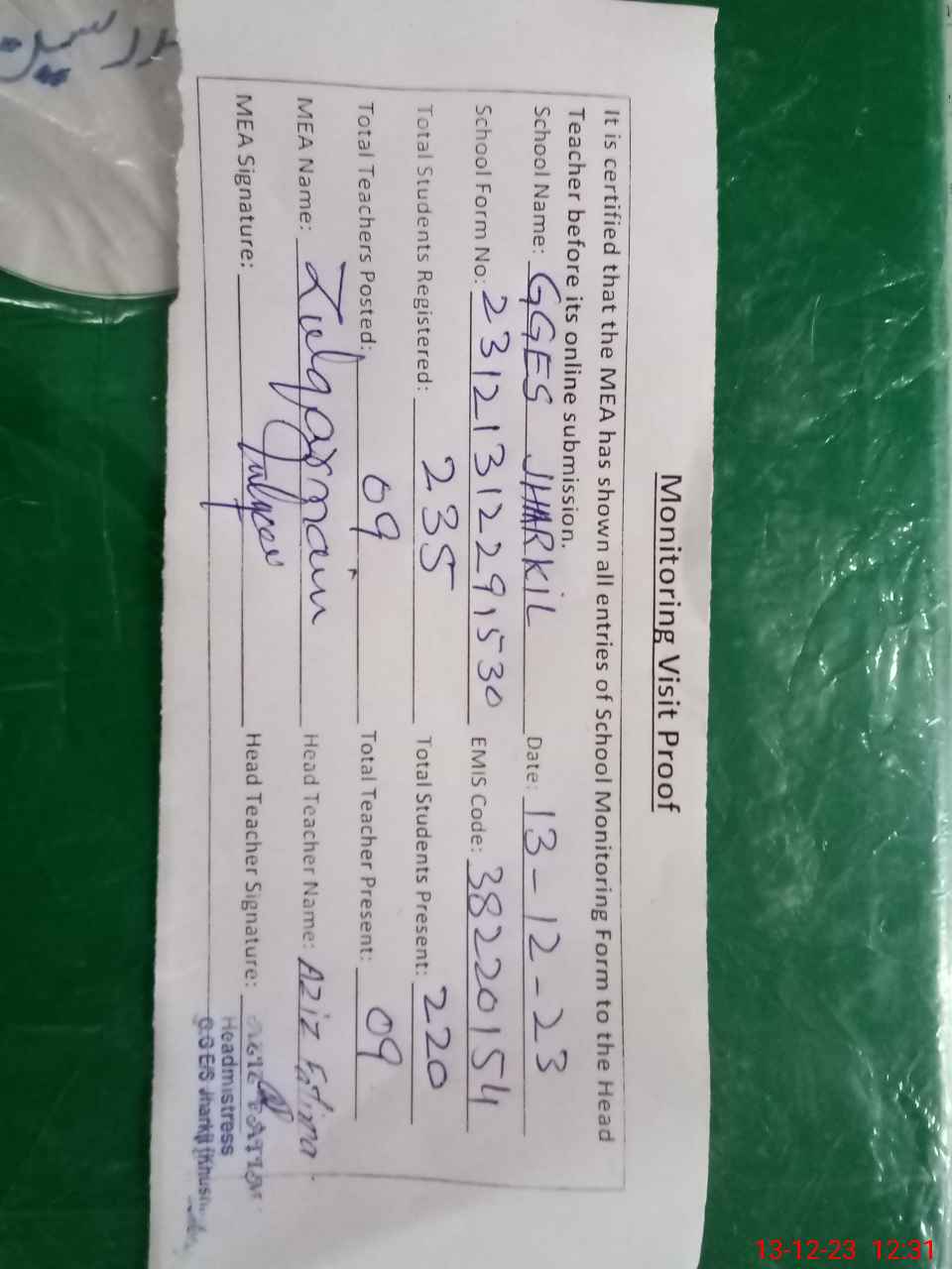 | EMIS Code: 38220154 | Name of School: GGES JHARKIL | |||