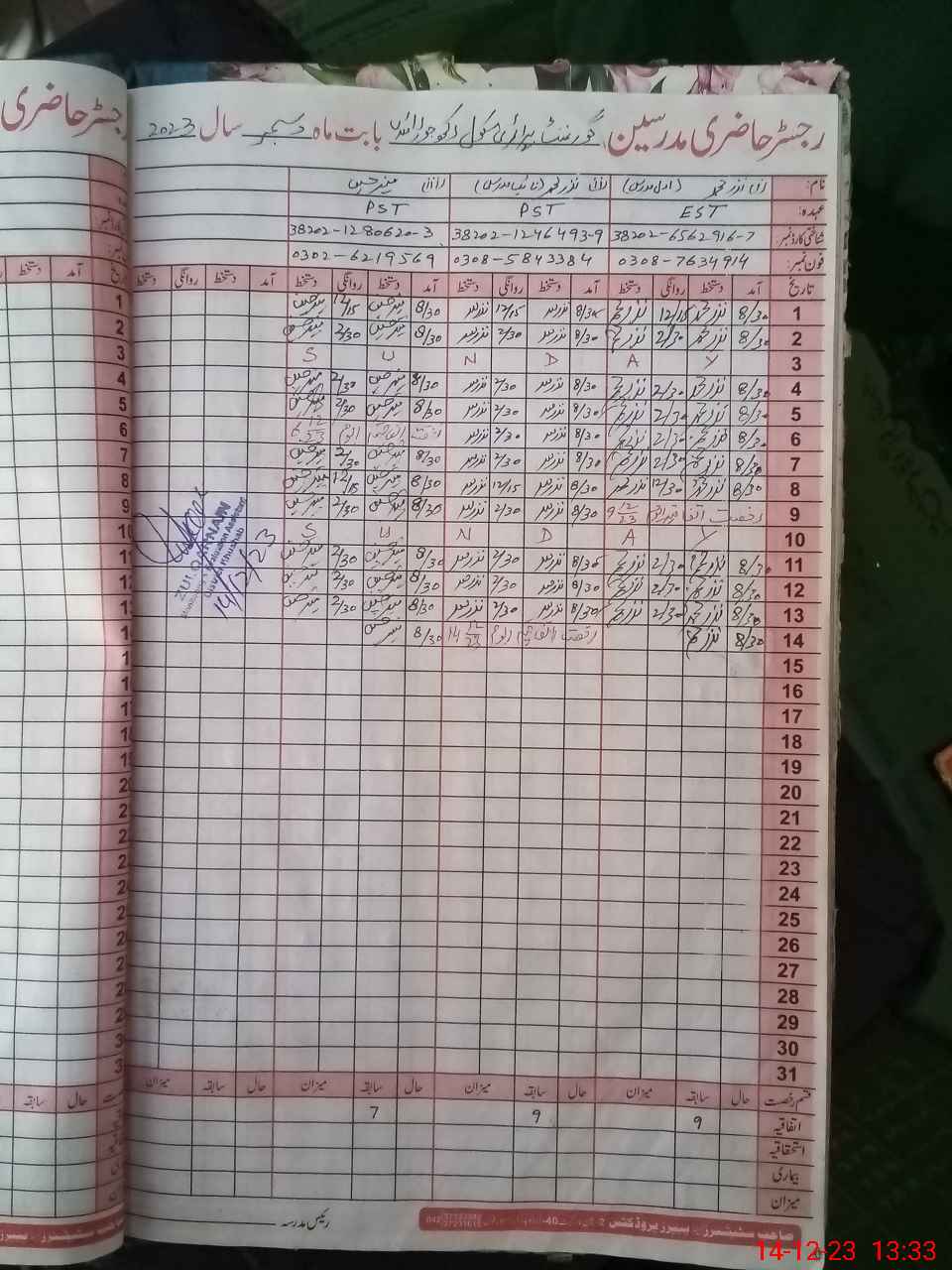 | Name: Na**** Mu**** Designation: (School Headmaster's/Headmistress's) Est Gen Phone/Cell Number: 03**** |