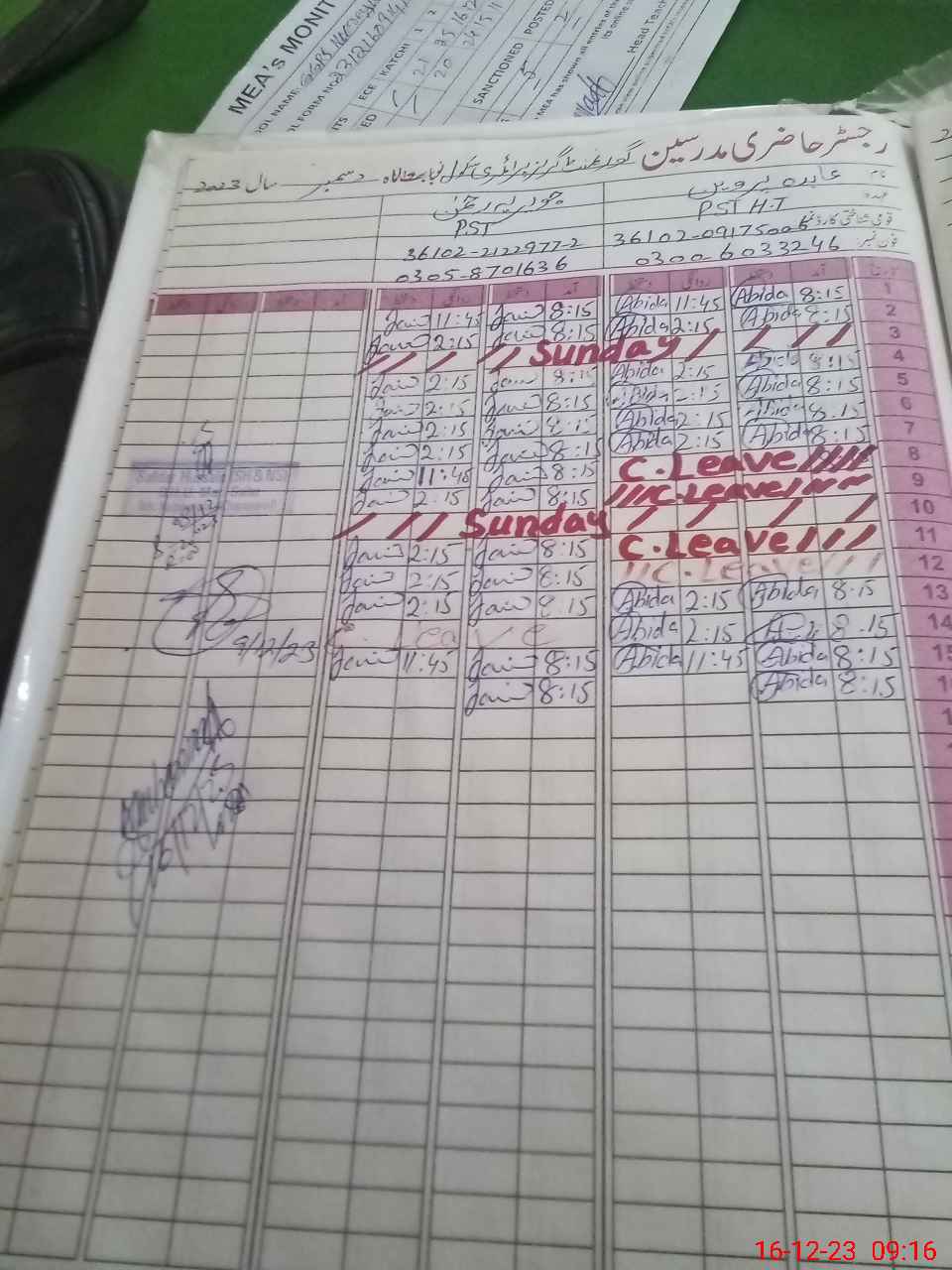 | Name: AB**** PE**** Designation: (School Headmaster's/Headmistress's) PST Phone/Cell Number: 03**** |