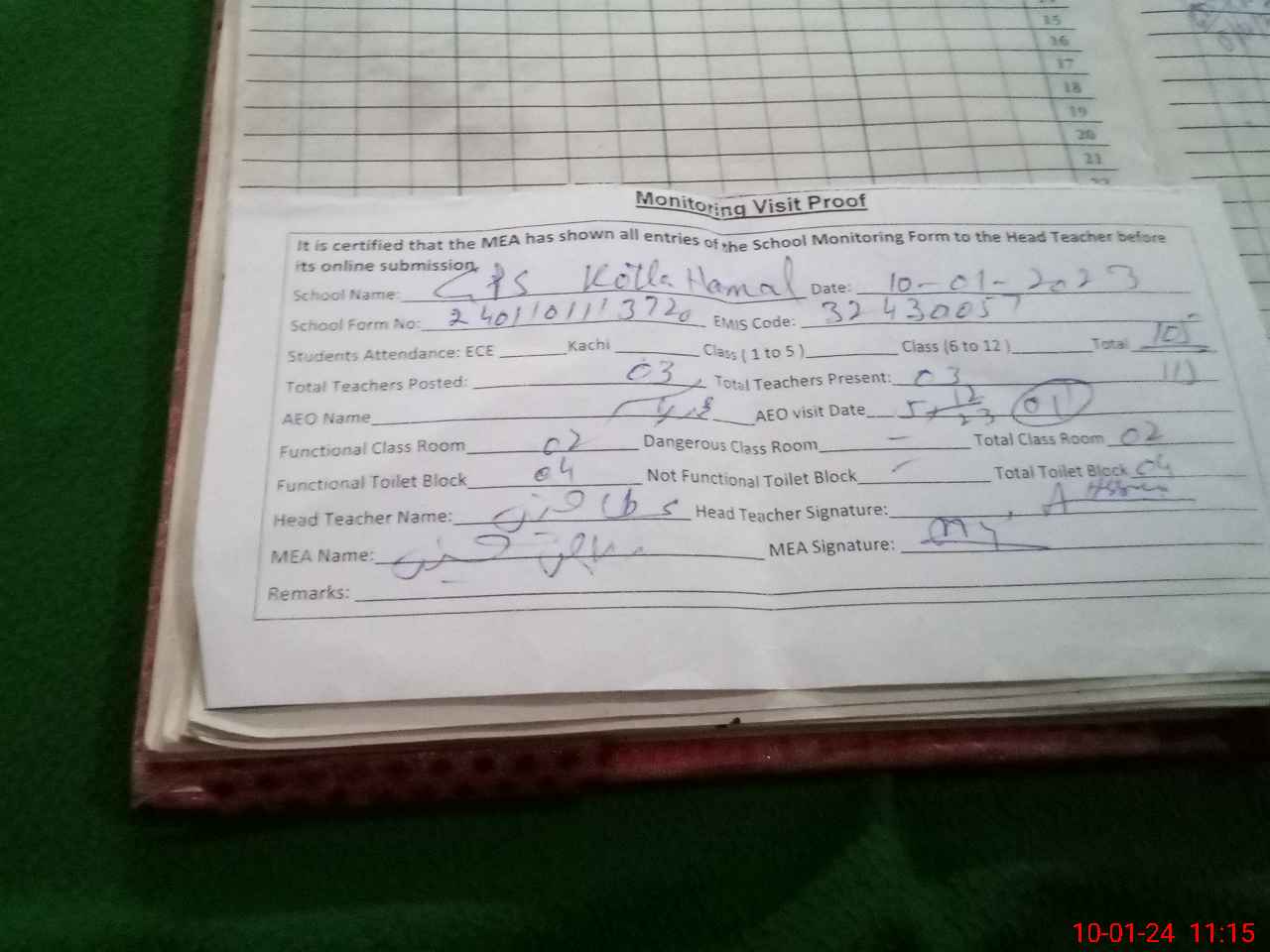 | EMIS Code: 32430057 | Name of School: GPS KOTLA HAMAL | |||