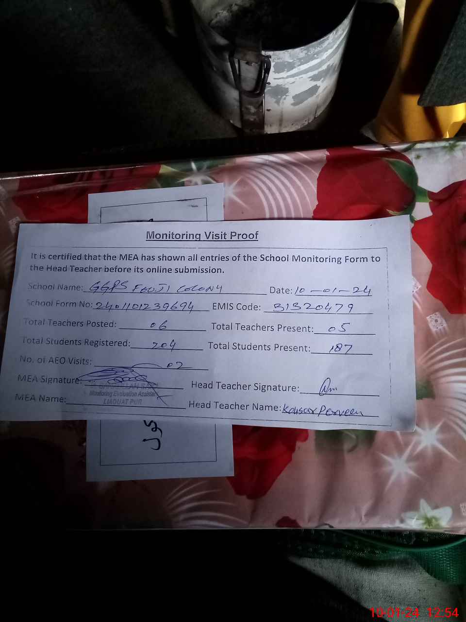 | EMIS Code: 31320479 | Name of School: GGPS FOJI COLONY | |||