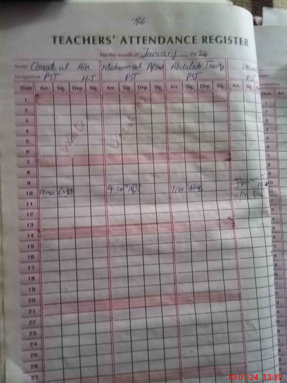 | CNIC | Full Name | Designation | R/C | Absence During Last Calender Month |